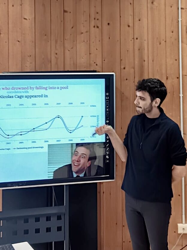 I dati intorno a noi è un percorso di avvicinamento all’utilizzo dei dati per indagare la realtĂ . Unisce statistica, igiene dell’informazione e arte, per fornire a studentesse e studenti gli strumenti necessari a dissezionare e verificare gli input ricevuti dal mondo social. Nell’anno scolastico 2025/2026, il laboratorio verrĂ ospitato dal Liceo Artistico Statale “Enrico e Umberto Nordio” di Trieste, e finanziato dalla SISSA e dal Comune di Trieste.
